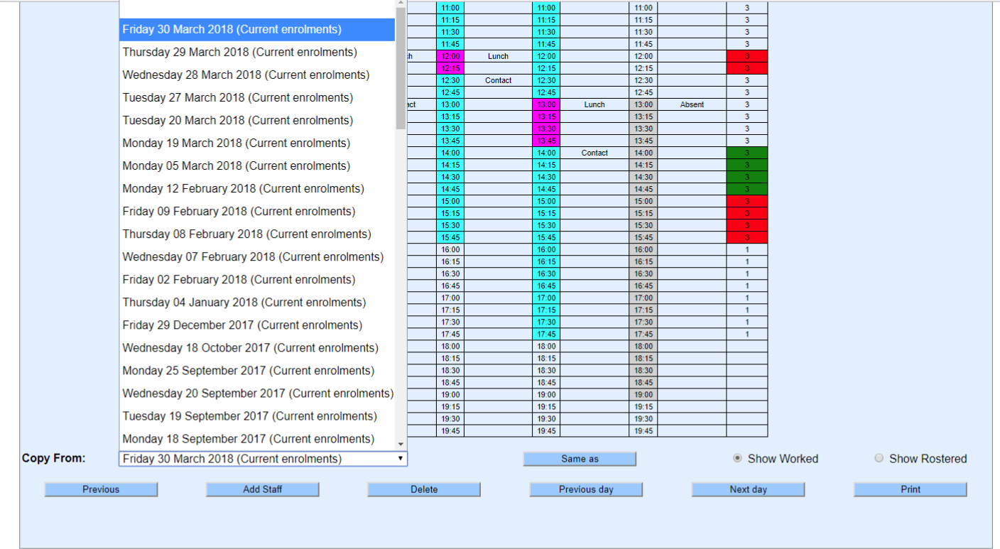 If the staff and their rostered times are not correct, see the scenarios below:
