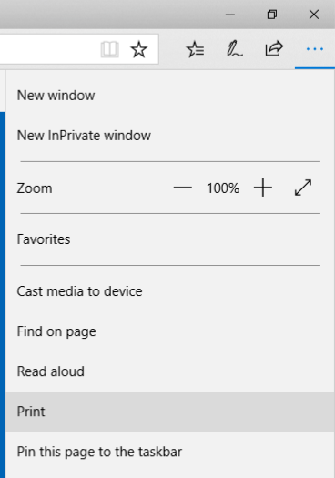 1. Click on the three dots at the top right hand side of the browser and click "Print"